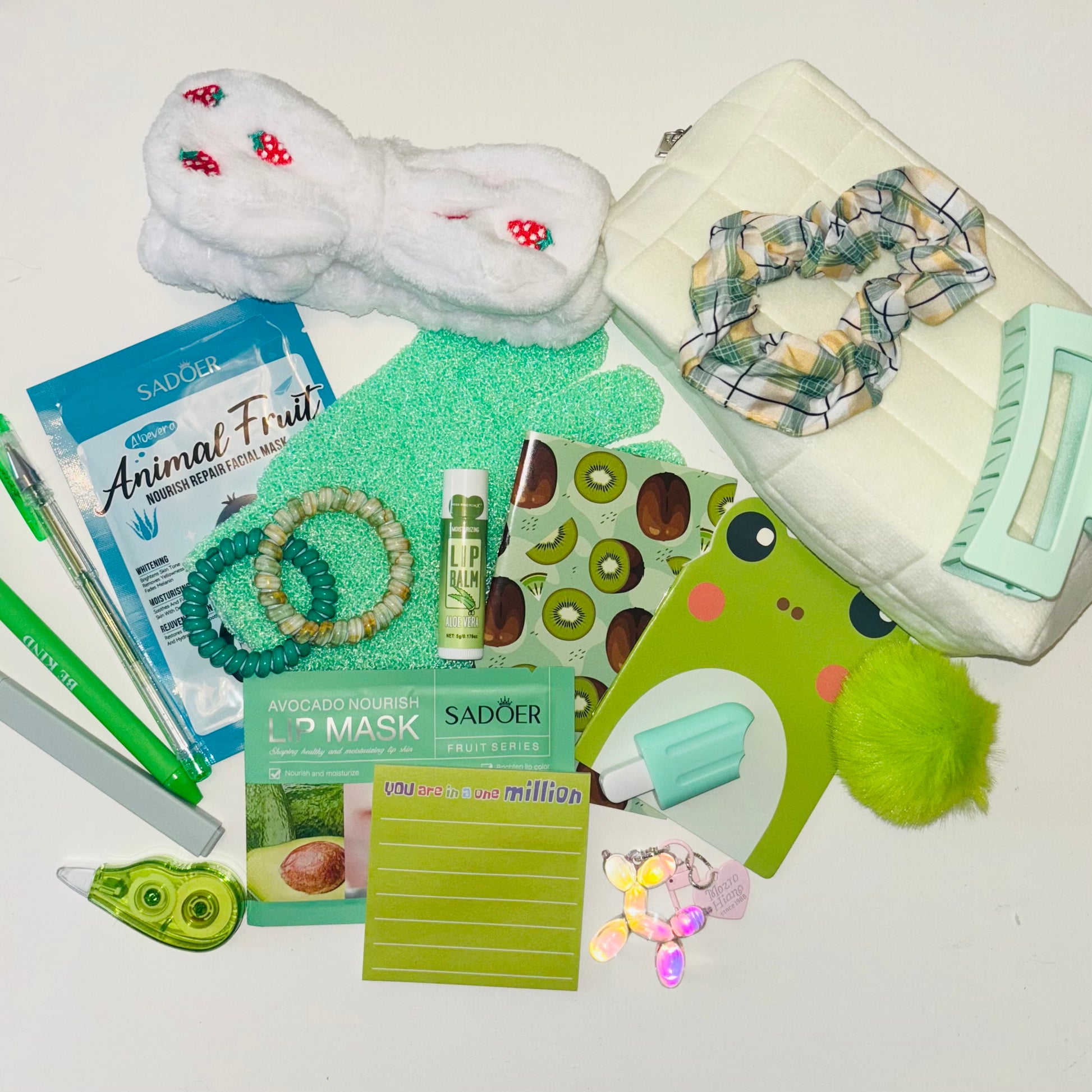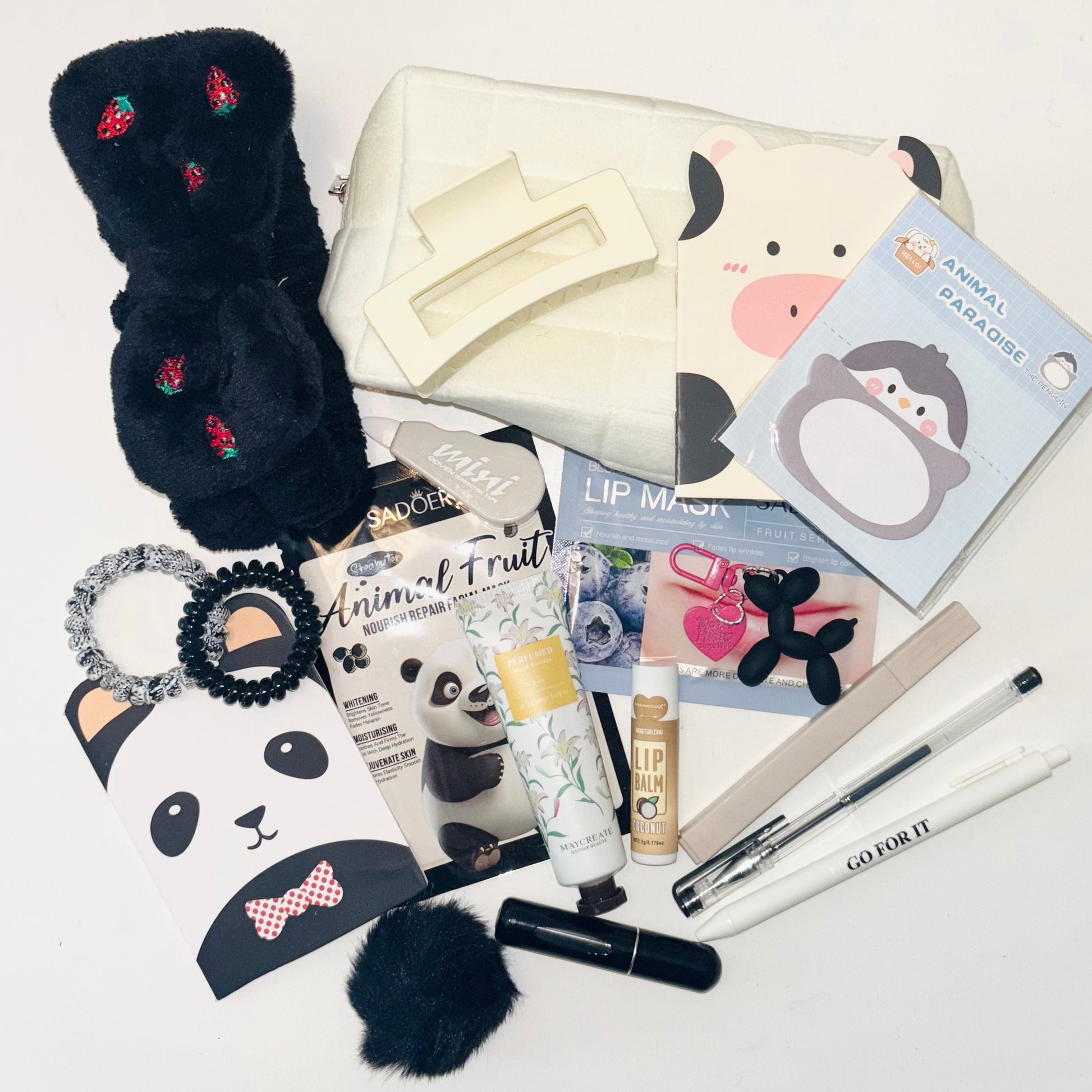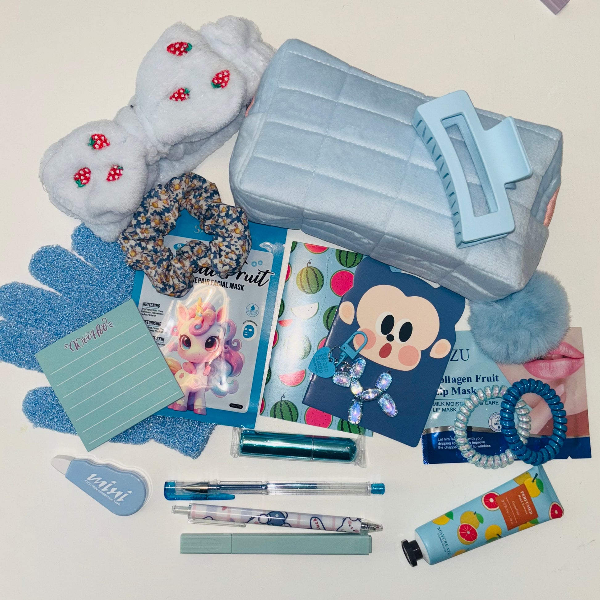 All items are selected at random using lottery balls. Current goodies include: stationary, beauty products & accessories, keyrings, hair accessories, bookish items, you may even find some beloved LULU LOVES products! More items are always being added
