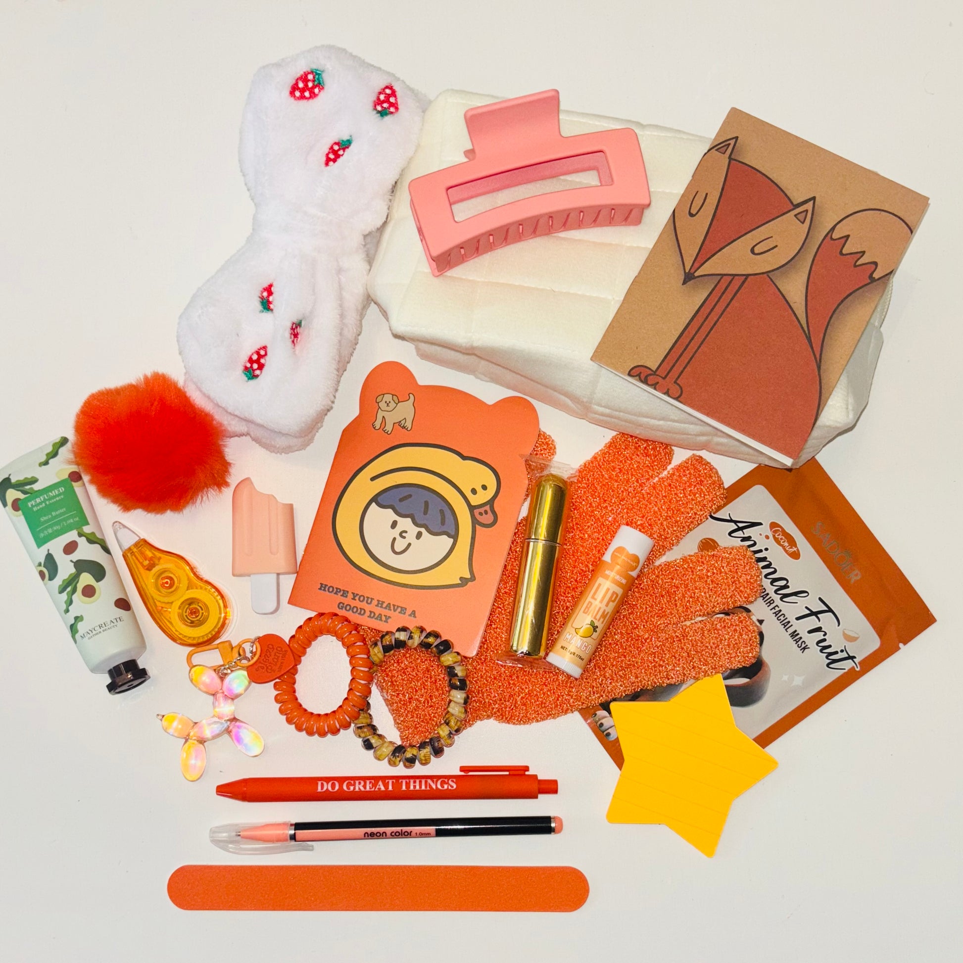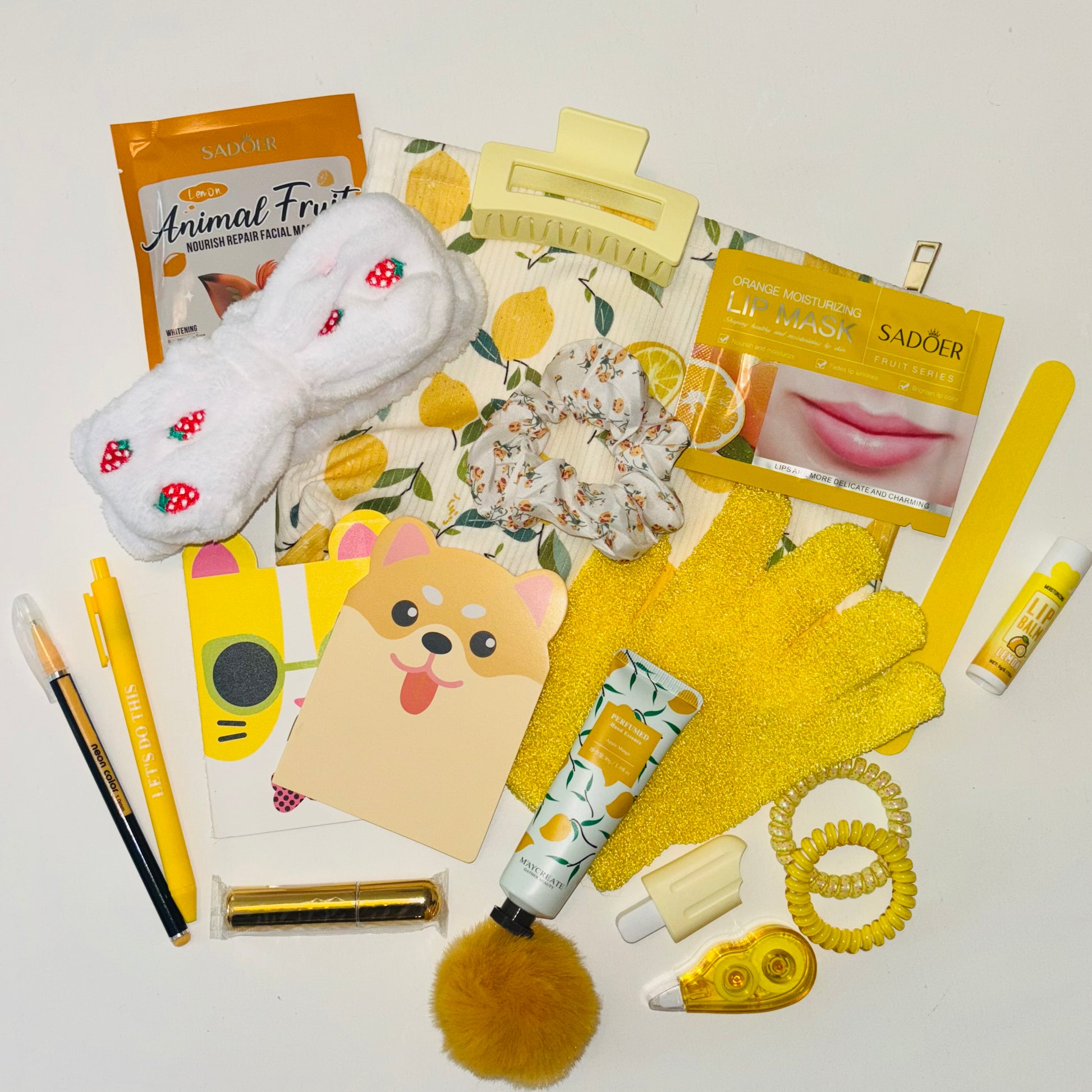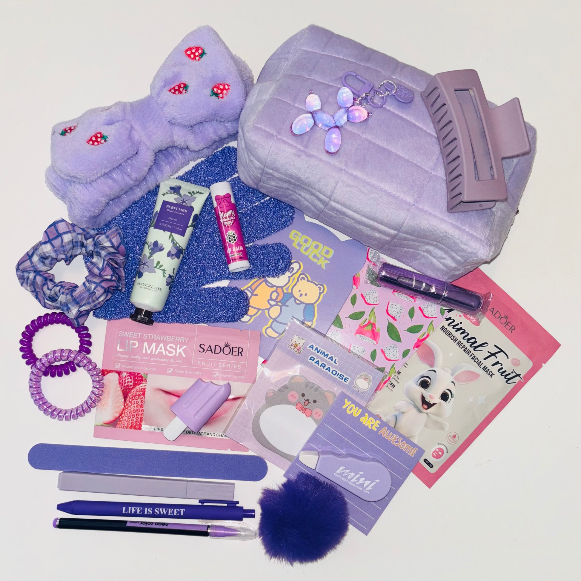 All items are selected at random using lottery balls. Current goodies include: stationary, beauty products & accessories, keyrings, hair accessories, bookish items, you may even find some beloved LULU LOVES products! More items are always being added